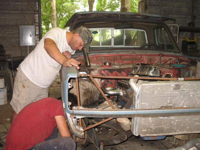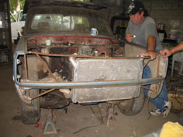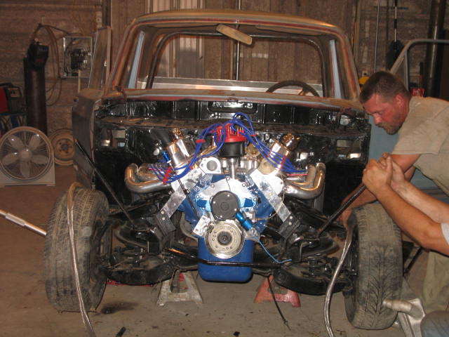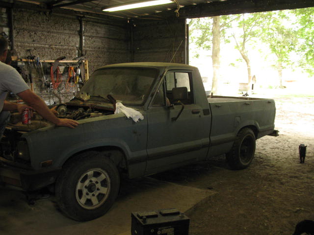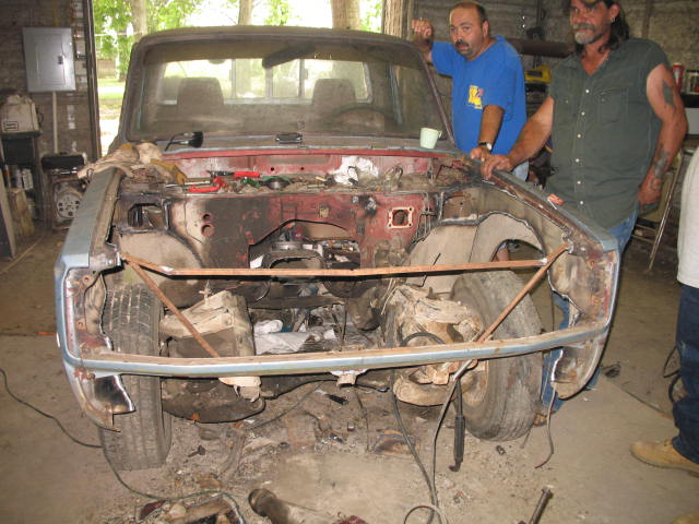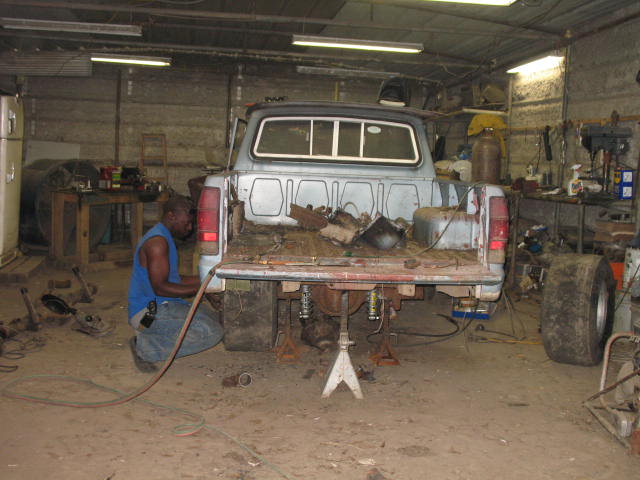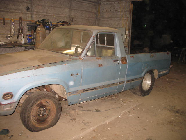 Timmy has now purchased a 1982 Ford Courier. It is under construction. Engine is a 394ci small block ford. Here are a few pics of the truck in the begining stages of construction.